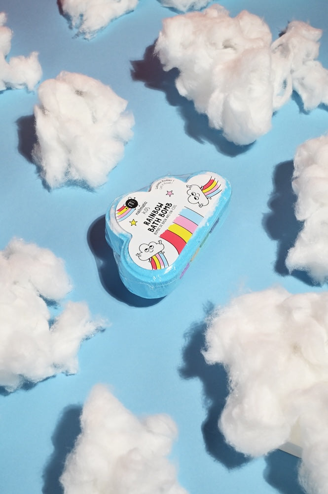 Bomba de baño de Nailmatic en forma de nube con propiedades hidratantes, enriquecida con aceite de girasol y de almendras dulces. Deja la nube flotar sin sumergirla y disfruta del espectáculo de colores durante 7 minutos. La bañera adquiere un precioso color azul piscina.