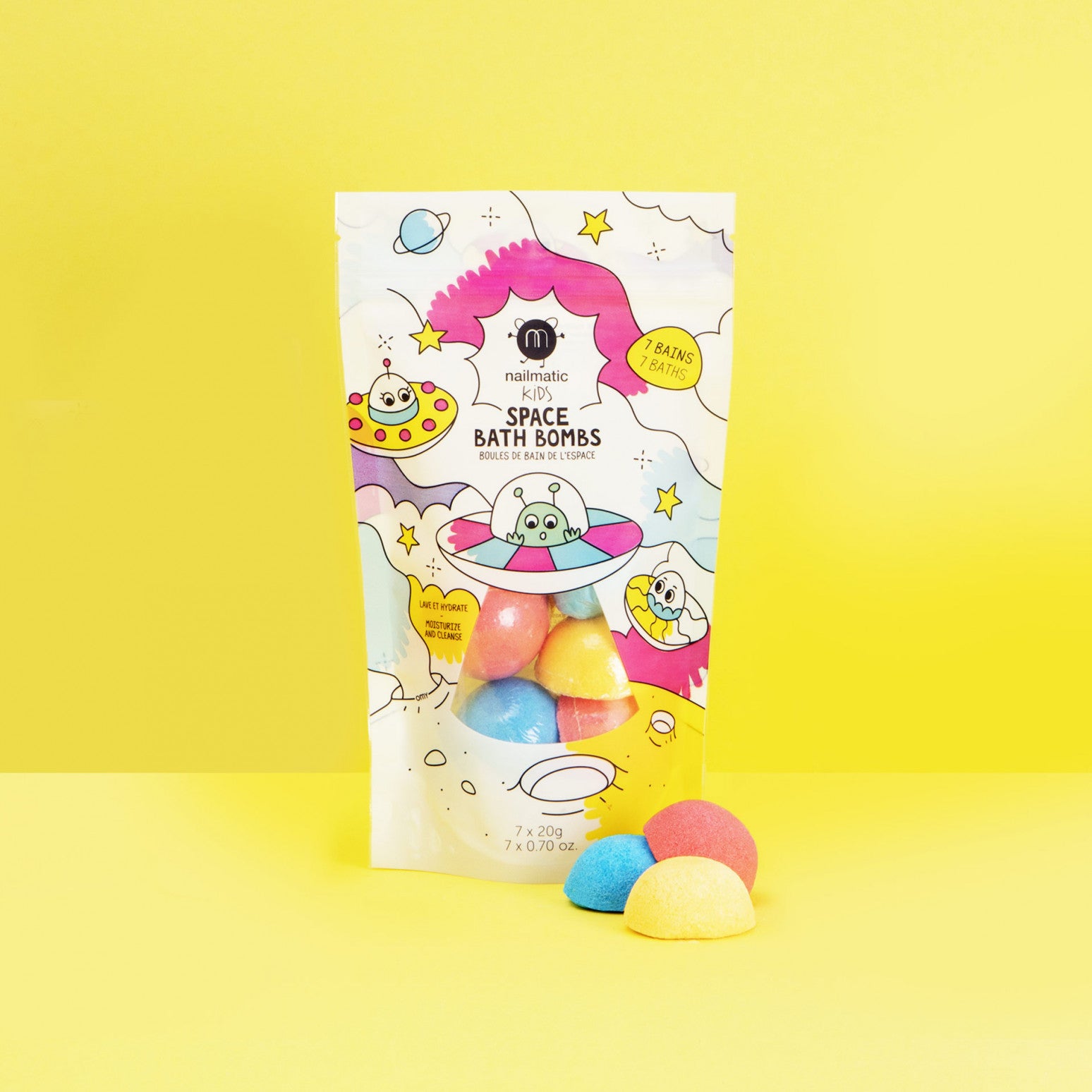 Bombas de baño de Nailmatic diseñadas para un momento de diversión y relajación. Especialmente formuladas para los niños, estas bombas de baño proporcionan a la piel un efecto hidratante y calmante.