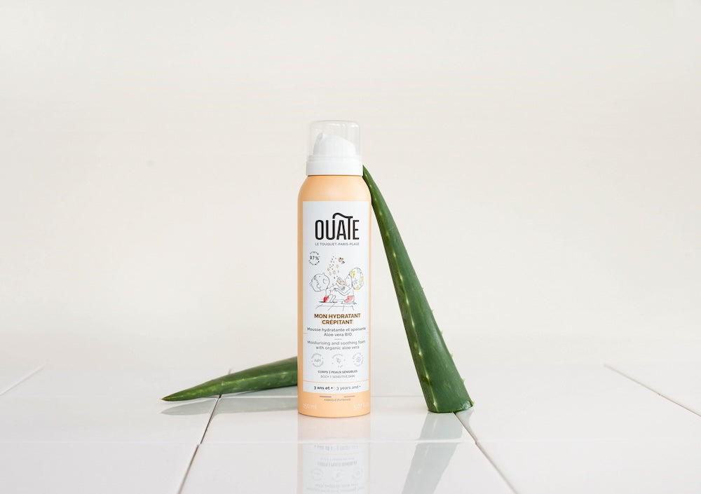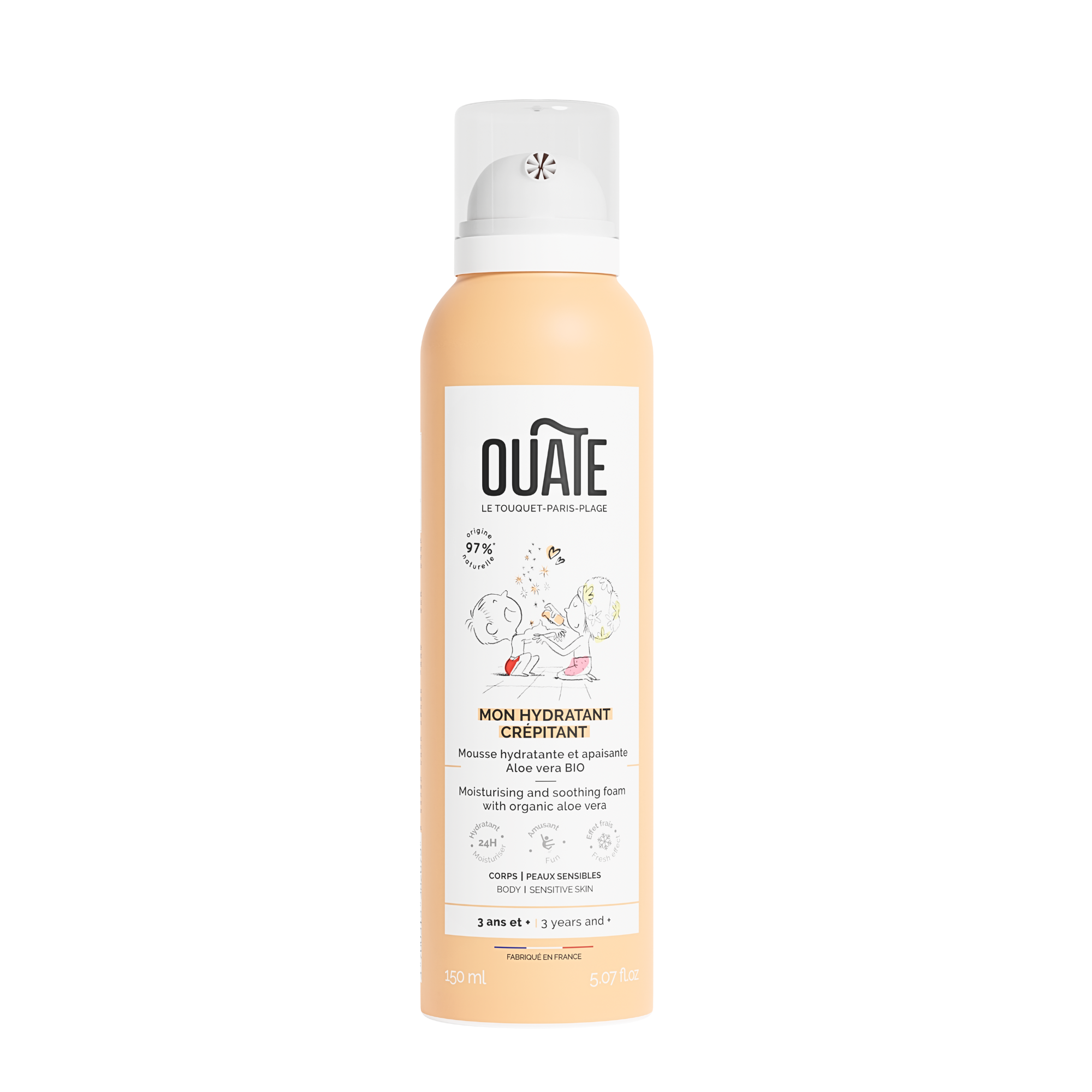 La espuma hidratante crepitante de Ouate promete 24 horas de hidratación gracias al aloe vera. Ofrece una experiencia sensorial única gracias a un sorprendente sonido crepitante.