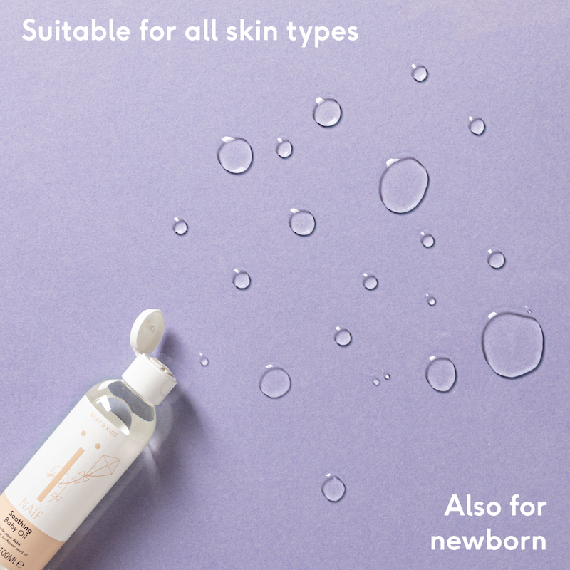 El aceite calmante para bebés Naïf se puede utilizar para diversas finalidades. Es ideal para después del baño o como aceite de masaje. Contiene aceite de semilla de girasol y aceite de semilla de algodón, ayuda a retener la humedad después del baño, evitando que la piel se reseque y manteniendo intacta la capa protectora natural de la piel de tu bebé.